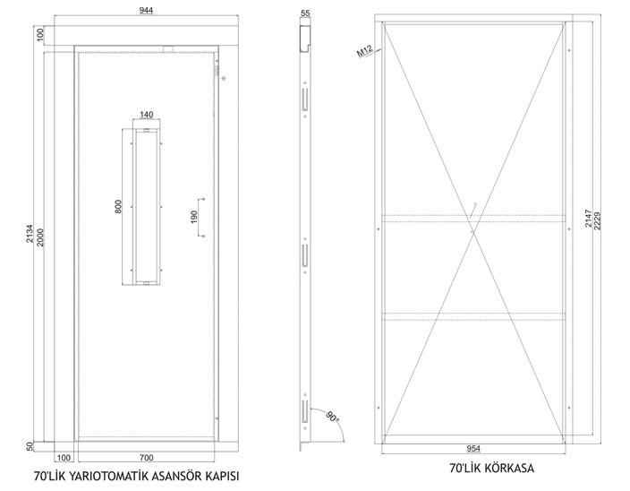 - Asansör kapı kanadı 1.2 mm kalınlığında A1 kalite DKP sac metalden üretilmiştir.