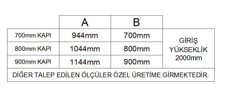 - Asansör kapı kanadı 1.2 mm kalınlığında A1 kalite DKP sac metalden üretilmiştir.